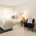 Неиссякаемый источник вдохновения для домашнего уюта: спальня в стиле современная классика с белыми стенами и темным паркетным полом — Houzz