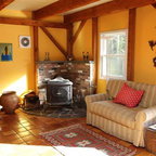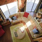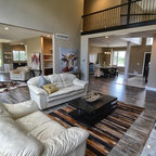Удачное сочетание для дизайна помещения: гостиная комната в стиле фьюжн с белыми стенами, деревянным полом и белым полом - самое интересное для вас — Houzz
