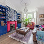 Свежая идея для дизайна: гостиная комната в морском стиле - отличное фото интерьера — Houzz
