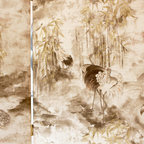 Неиссякаемый источник вдохновения для домашнего уюта: парадная, открытая гостиная комната среднего размера в классическом стиле с бежевыми стенами, темным паркетным полом, двусторонним камином, фасадом камина из штукатурки и коричневым полом — Houzz