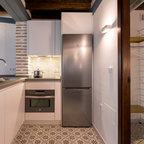 Isla cocina con taburetes altos.