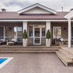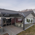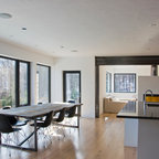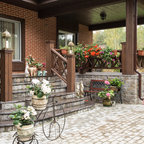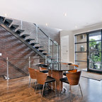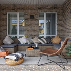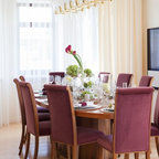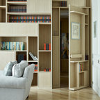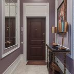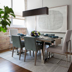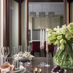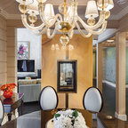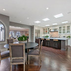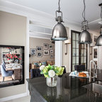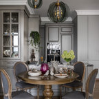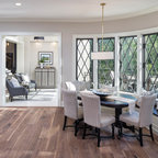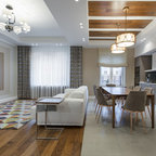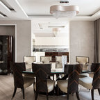 Неиссякаемый источник вдохновения для домашнего уюта: гостиная-столовая среднего размера в стиле современная классика с бежевыми стенами, полом из керамической плитки и коричневым полом — Houzz