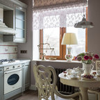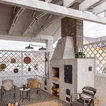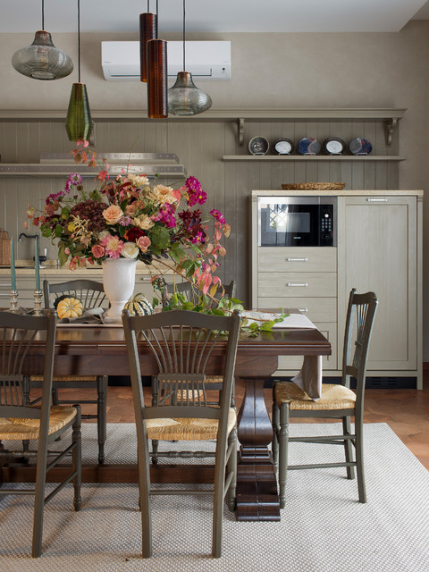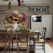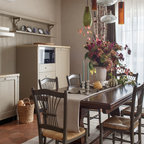 Атмосферная кухня-столовая в итальянском стиле, совмещенная с гостиной в уютном гостевом доме.