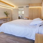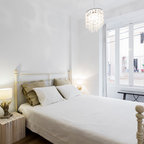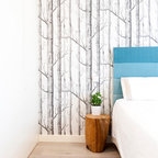 На фото: с высоким бюджетом хозяйские спальни среднего размера в скандинавском стиле с белыми стенами, светлым паркетным полом и бежевым полом без камина — Houzz