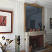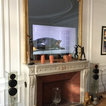 Une télévision se cache dans le miroir de la cheminée.