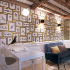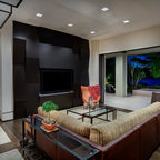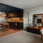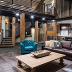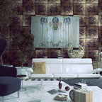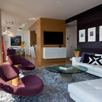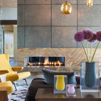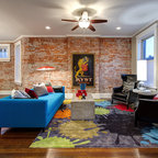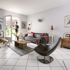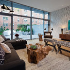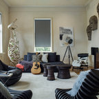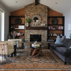 Пример оригинального дизайна интерьера: гостиная комната в стиле фьюжн — Houzz