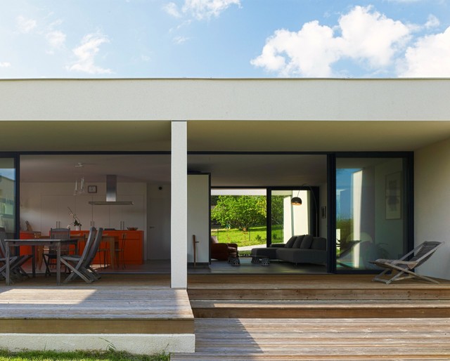 Пример оригинального дизайна интерьера: гостиная комната в современном стиле — Houzz
