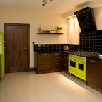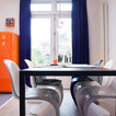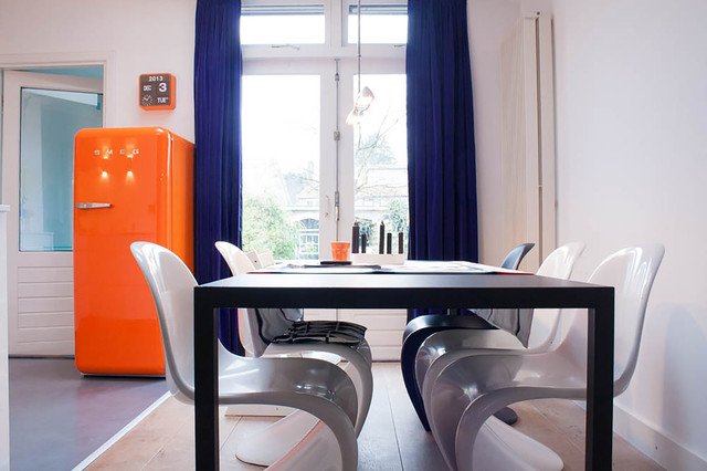 Verner Panton chairs, SMEG fridge, table MDF Italia