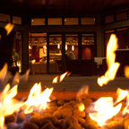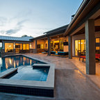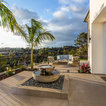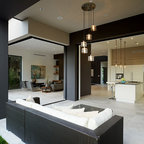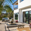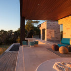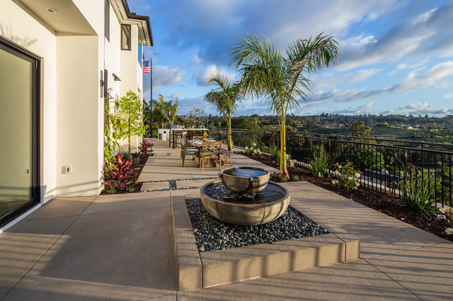 Пример оригинального дизайна: большой дворик на заднем дворе в современном стиле с местом для костра и покрытием из бетонных плит без защиты от солнца — Houzz