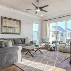 На фото: изолированные гостиные комнаты в стиле фьюжн с серыми стенами и паркетным полом среднего тона — Houzz