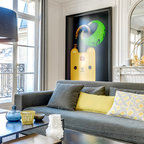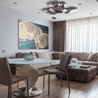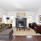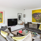 На фото: со средним бюджетом большие парадные, открытые гостиные комнаты в современном стиле с белыми стенами и светлым паркетным полом — Houzz