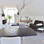 Пример оригинального дизайна интерьера: гостиная комната в скандинавском стиле — Houzz