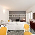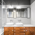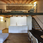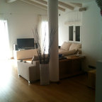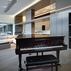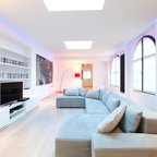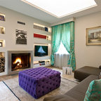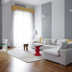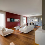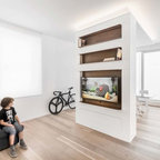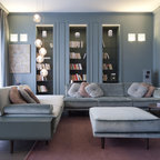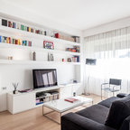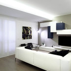 Выдающиеся фото от архитекторов и дизайнеров интерьера: гостиная комната в современном стиле с белыми стенами и мраморным полом — Houzz