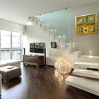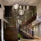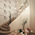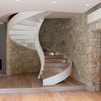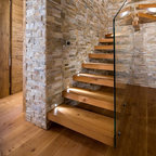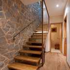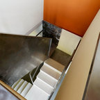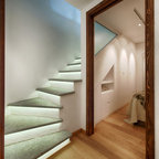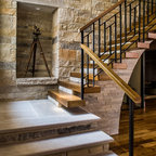 Выдающиеся фото от архитекторов и дизайнеров интерьера: угловая лестница среднего размера в стиле кантри с бетонными ступенями —