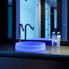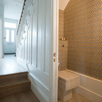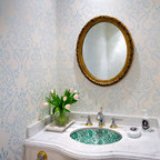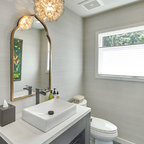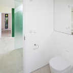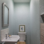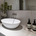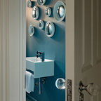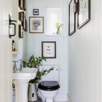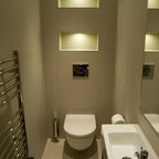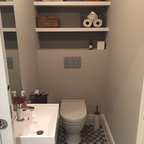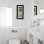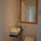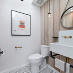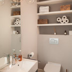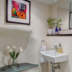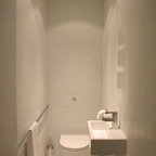 Выдающиеся фото от архитекторов и дизайнеров интерьера: маленький туалет в современном стиле с подвесной раковиной и белыми стенами — Houzz