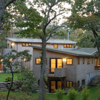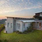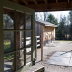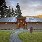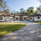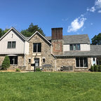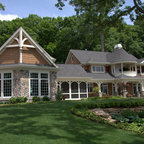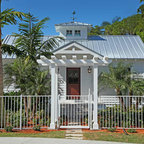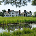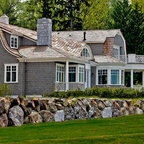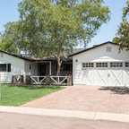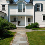 Новый формат декора квартиры: фасад дома белого цвета в стиле кантри с облицовкой из дерева — Houzz