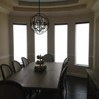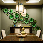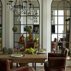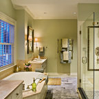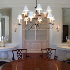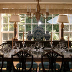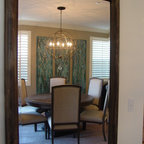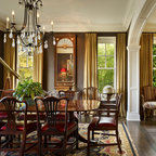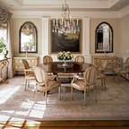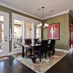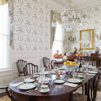 Свежая идея для дизайна: столовая в классическом стиле с зелеными стенами, ковровым покрытием и камином - отличное фото интерьера — Houzz
