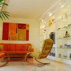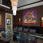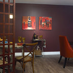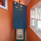I simply love the idea of painting this wall at the end of a hallway a dark purple to make it recede even further. It feels as if it's a mile away. Throw on a flame-orange painting, and you have a real destination spot in your home. Try Pratt & Lambert Black Plum (31-18) for a really dramatic accent wall.