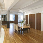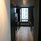 На фото: коридор в современном стиле с паркетным полом среднего тона с — Houzz