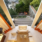 Sustainable luxury expressed on many levels, this home is anticipated to achieve LEED platinum status. Rainwater is harvested from the roof and used for the irrigation of the low water use lawn and plantings. Permeable paving in the front and rear allows water to percolate back into the site. The steep site is terraced with an outdoor lounge off the home, a lawn area and a large deck with firepit for evening gatherings. Materials are sustainably sourced and impeccably detailed.