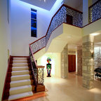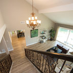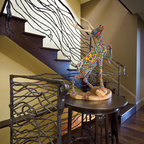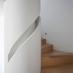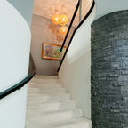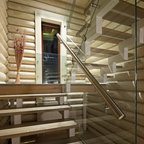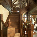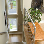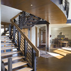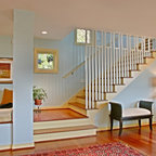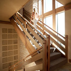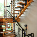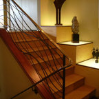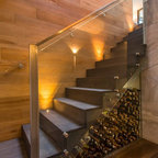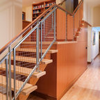 Создайте стильный интерьер: лестница в современном стиле с деревянными ступенями и деревянными подступенками - последний тренд — Houzz