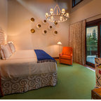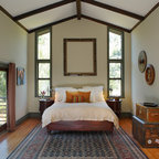 На фото: спальни в стиле фьюжн с бежевыми стенами —