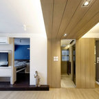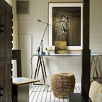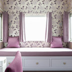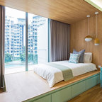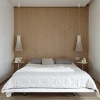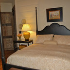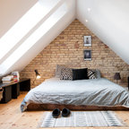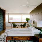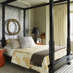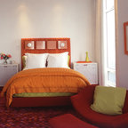 Свежая идея для дизайна: спальня в стиле фьюжн с разноцветными стенами - отличное фото интерьера — Houzz
