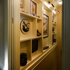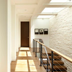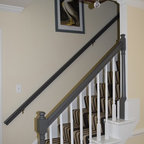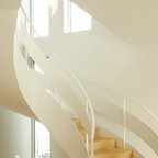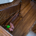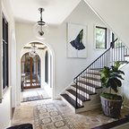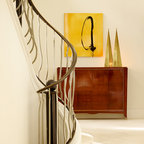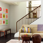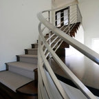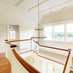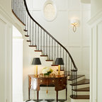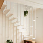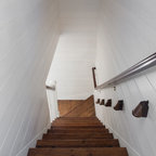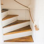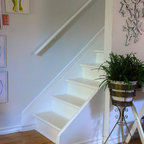Новый формат декора квартиры: лестница в стиле современная классика с крашенными деревянными ступенями и крашенными деревянными подступенками — Houzz