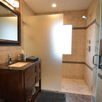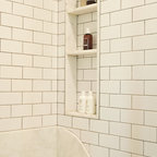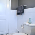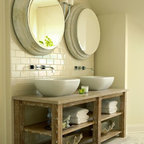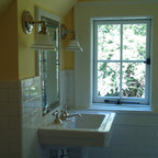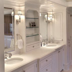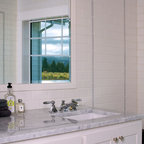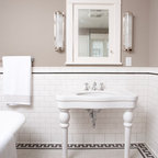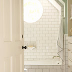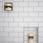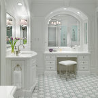 Новые идеи обустройства дома: ванная комната в классическом стиле с врезной раковиной, белыми фасадами, белой плиткой и плиткой кабанчик — Houzz