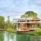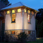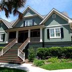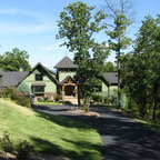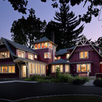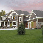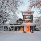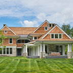 Создайте стильный интерьер: двухэтажный фасад дома в классическом стиле с облицовкой из дерева - последний тренд — Houzz