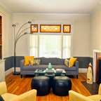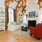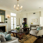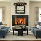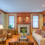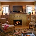 Неиссякаемый источник вдохновения для домашнего уюта: гостиная комната в классическом стиле с фасадом камина из плитки — Houzz