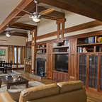 Part of the fun was in seeing what happened when a broad gabled volume was bent to respond to the contours of the site and to begin to suggest an outdoor space on the water side. Keeping the gable roof un-bent while putting a crook in the plan resulted in some curious volumes and unexpected shapes, which you discover as you move around the house.