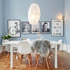 Выдающиеся фото от архитекторов и дизайнеров интерьера: столовая в скандинавском стиле с белыми стенами — Houzz