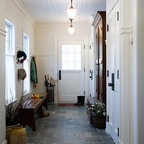Новый формат декора квартиры: тамбур в классическом стиле с белыми стенами —