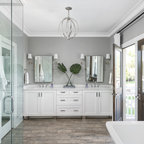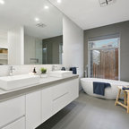 Новые идеи обустройства дома: ванная комната в современном стиле с отдельно стоящей ванной — Houzz